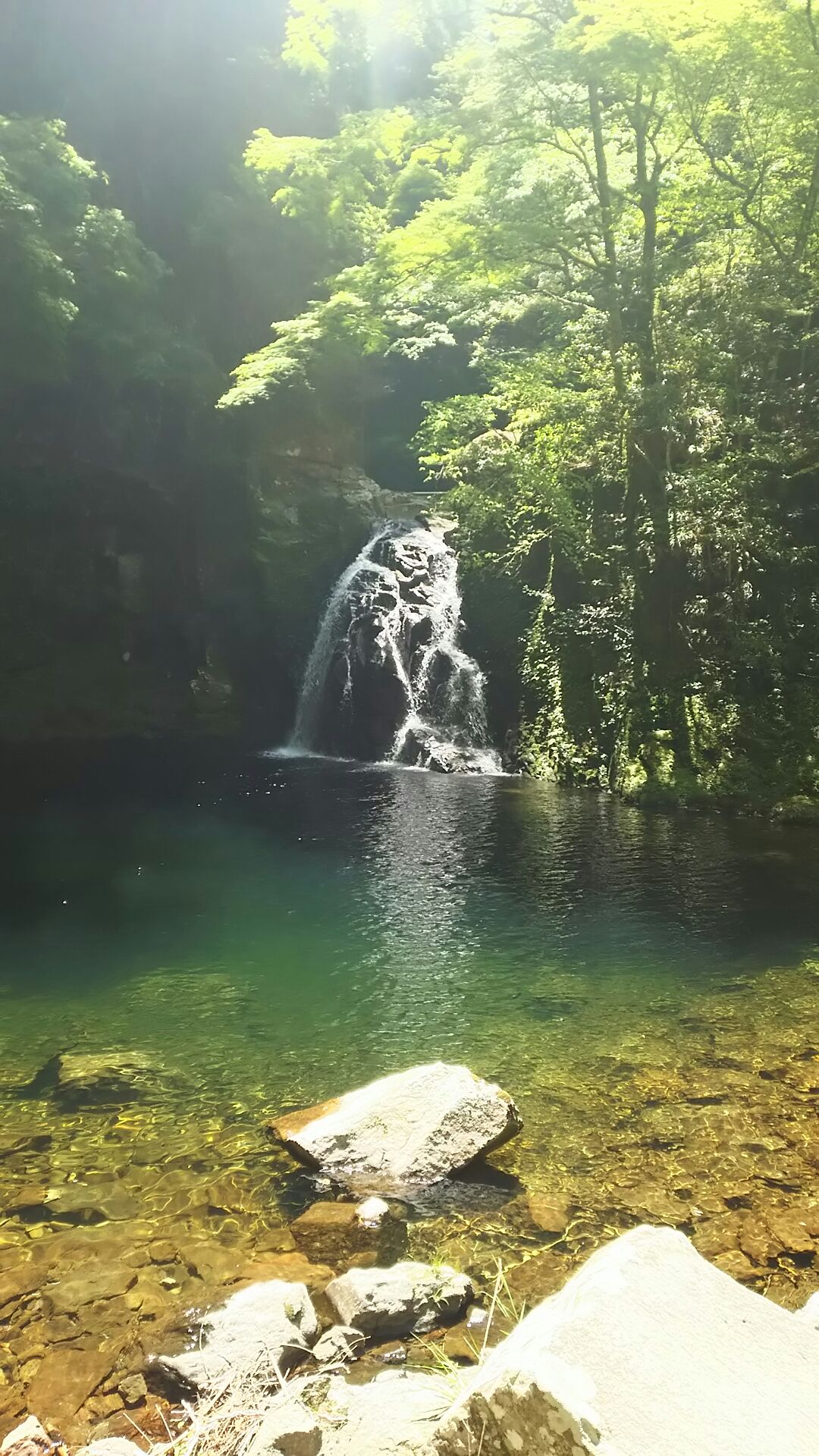 最初は不動滝でした。朝なので人は全くいません。