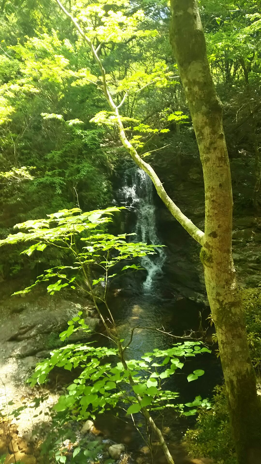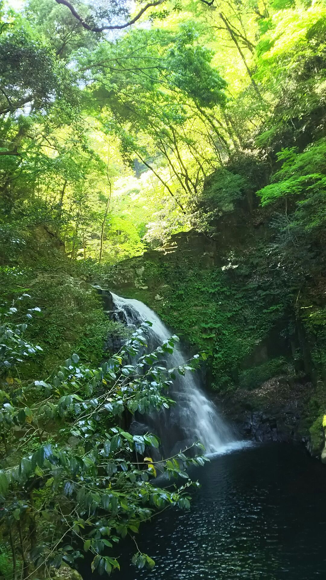 赤目五瀑最後の滝は琵琶滝です。ちなみにここまでの所要時間の目安は80分らしいです。長いよ。ここの滝が一番手軽に近くまで寄れます。