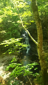 荷担滝が4つ目となりますが、布曳滝からは30分以上かかります(途中に百畳岩があり、遅い時間の場合は引き返してくれという掲示がありました。)